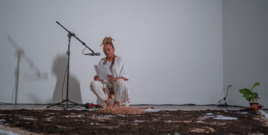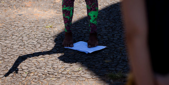 Isa Colucci2023-01-06T20:42:48-03:00© Luiza Fernandes REZOS PARA RASGAR O MUNDO | TIETA MACAU (MA) Chão de areia, alguns escritos, pés que amaciam o chão. Em comunicação com o invisível plurisônico, caboclos bradam. Versos e curas. O que de passagem passa, envulta, o que não se vê, entre o som e